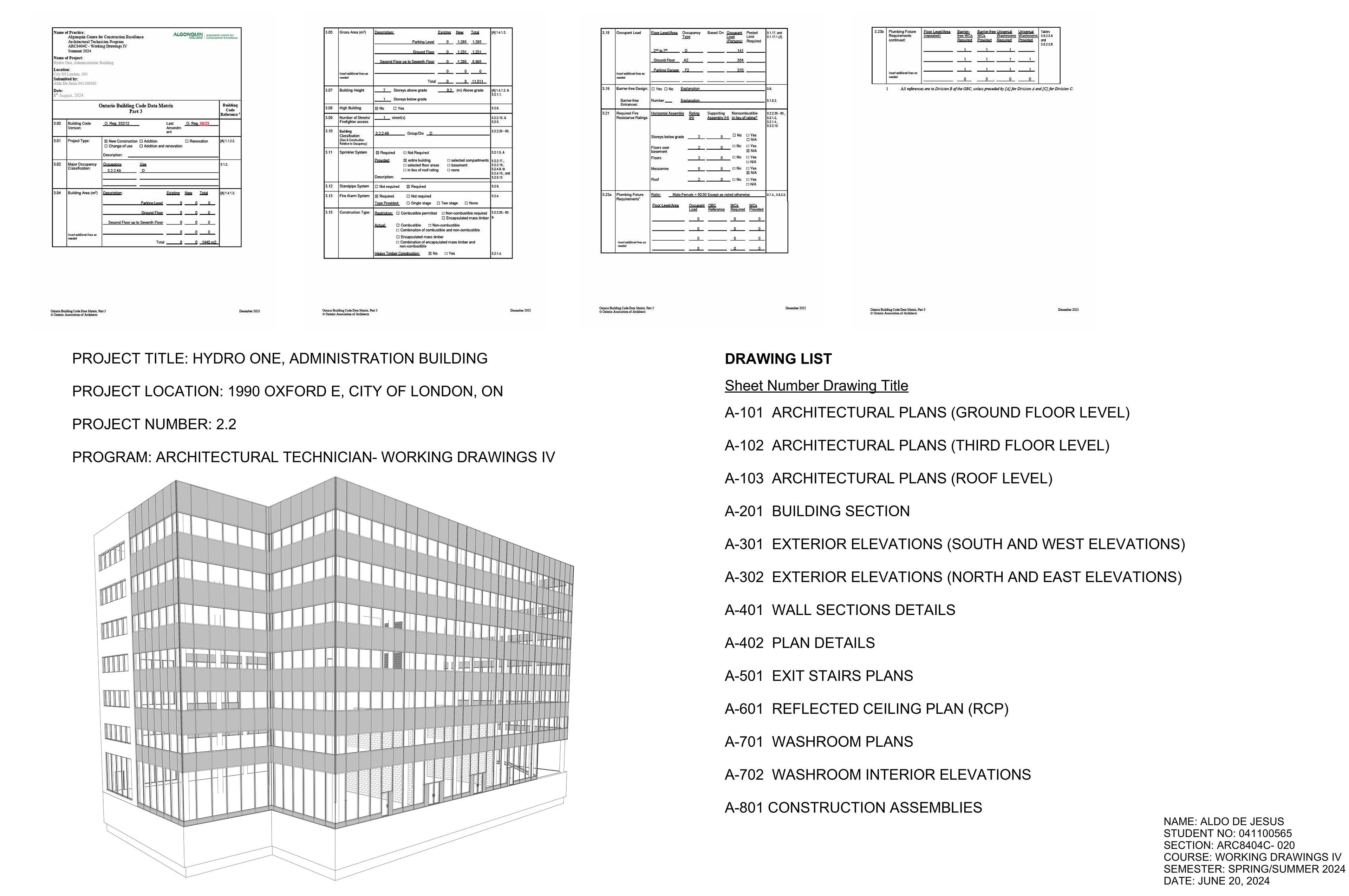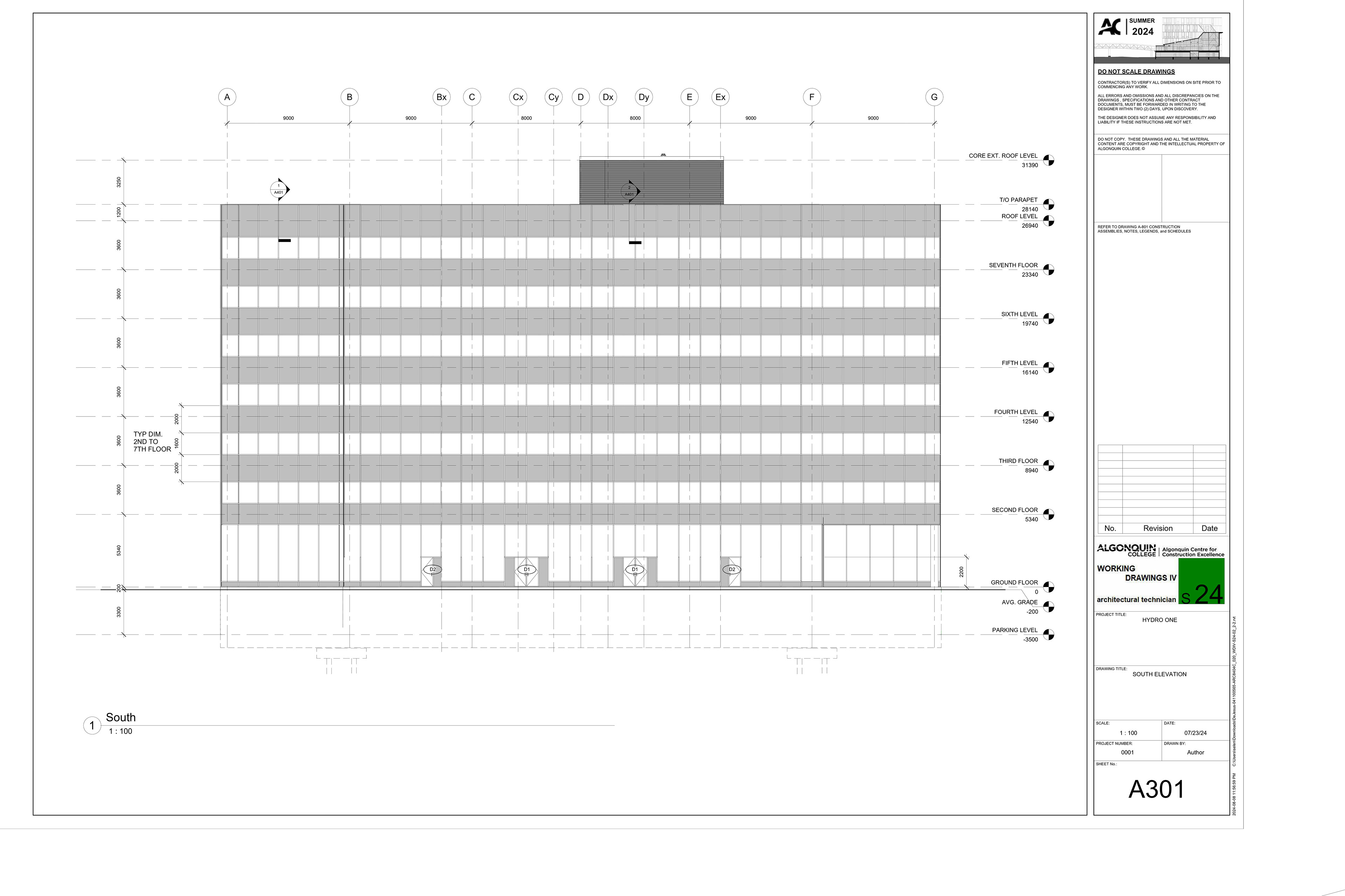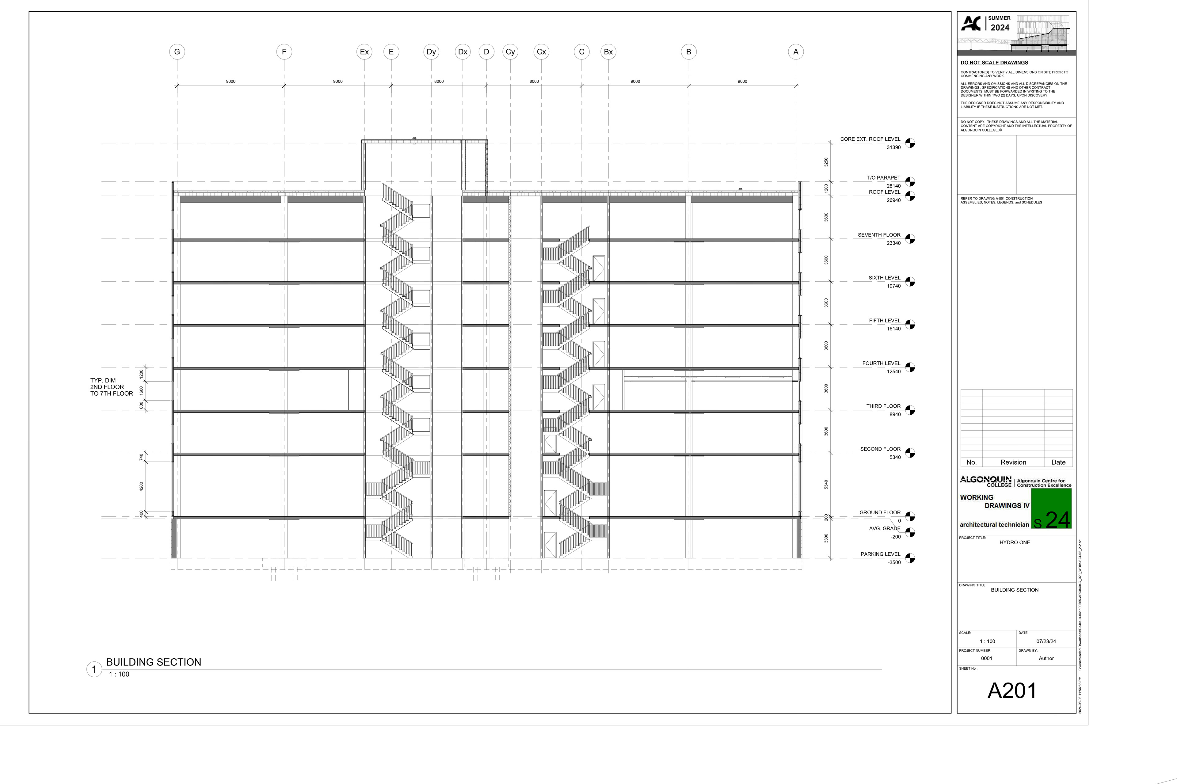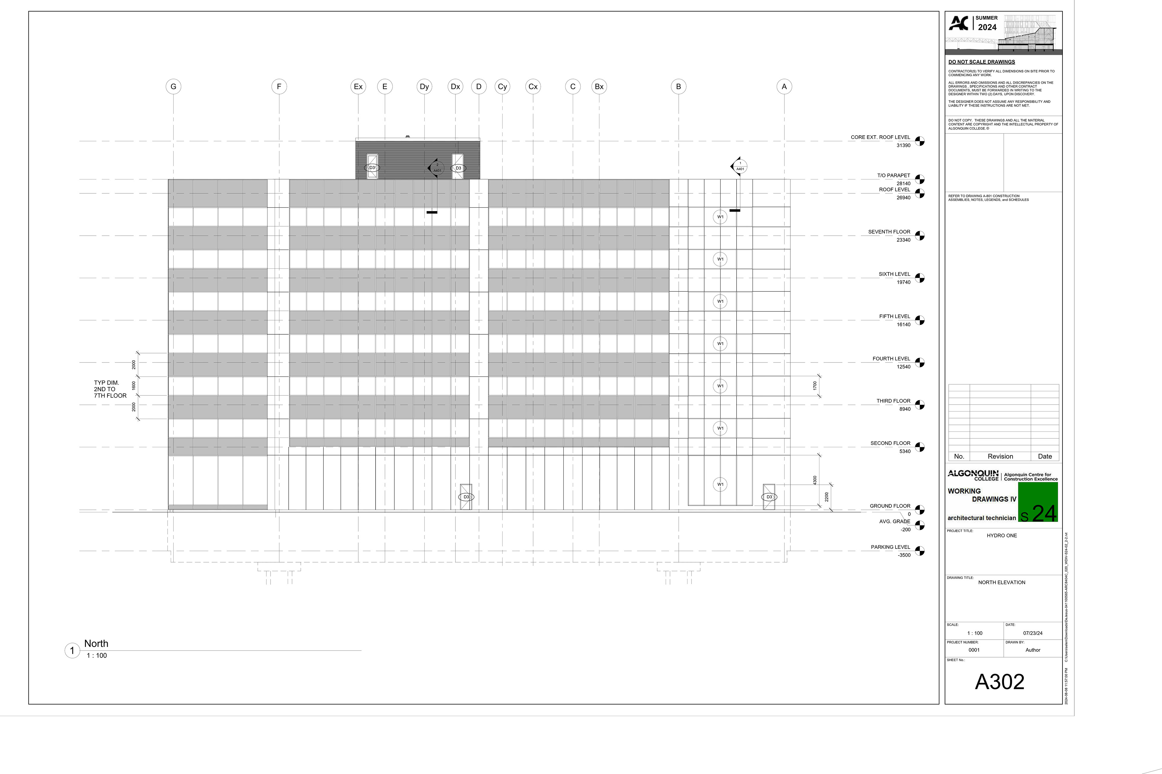 A 7 storey building partial construction drawings set, done IN AUTODESK REVIT
